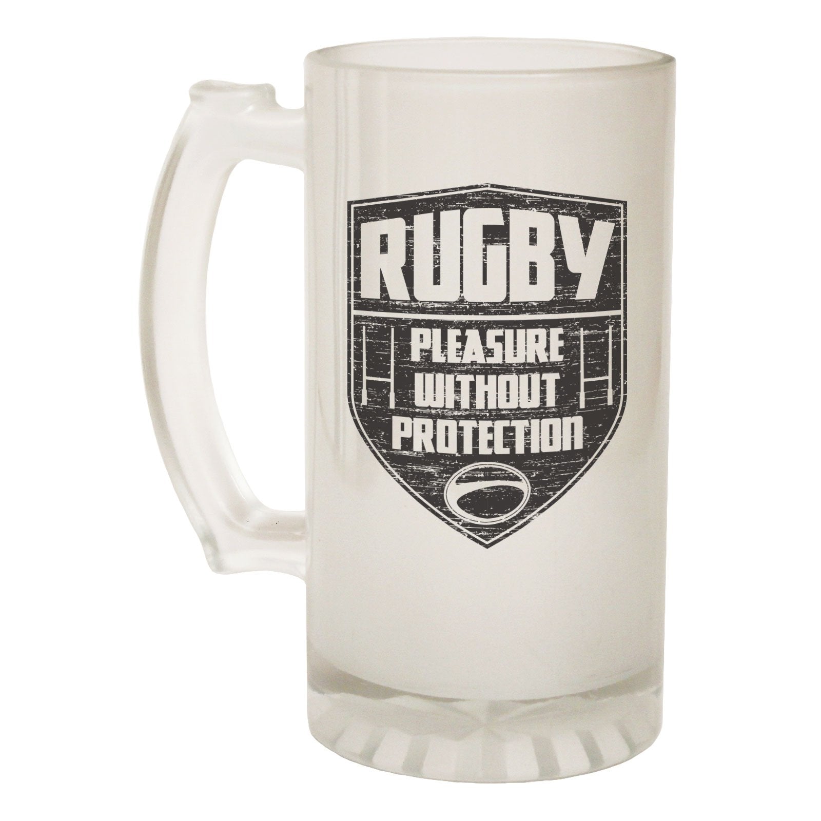 Alcohol Frosted Glass Beer Stein - Pleasure Without Protect Rugby - Funny Novelty Birthday
