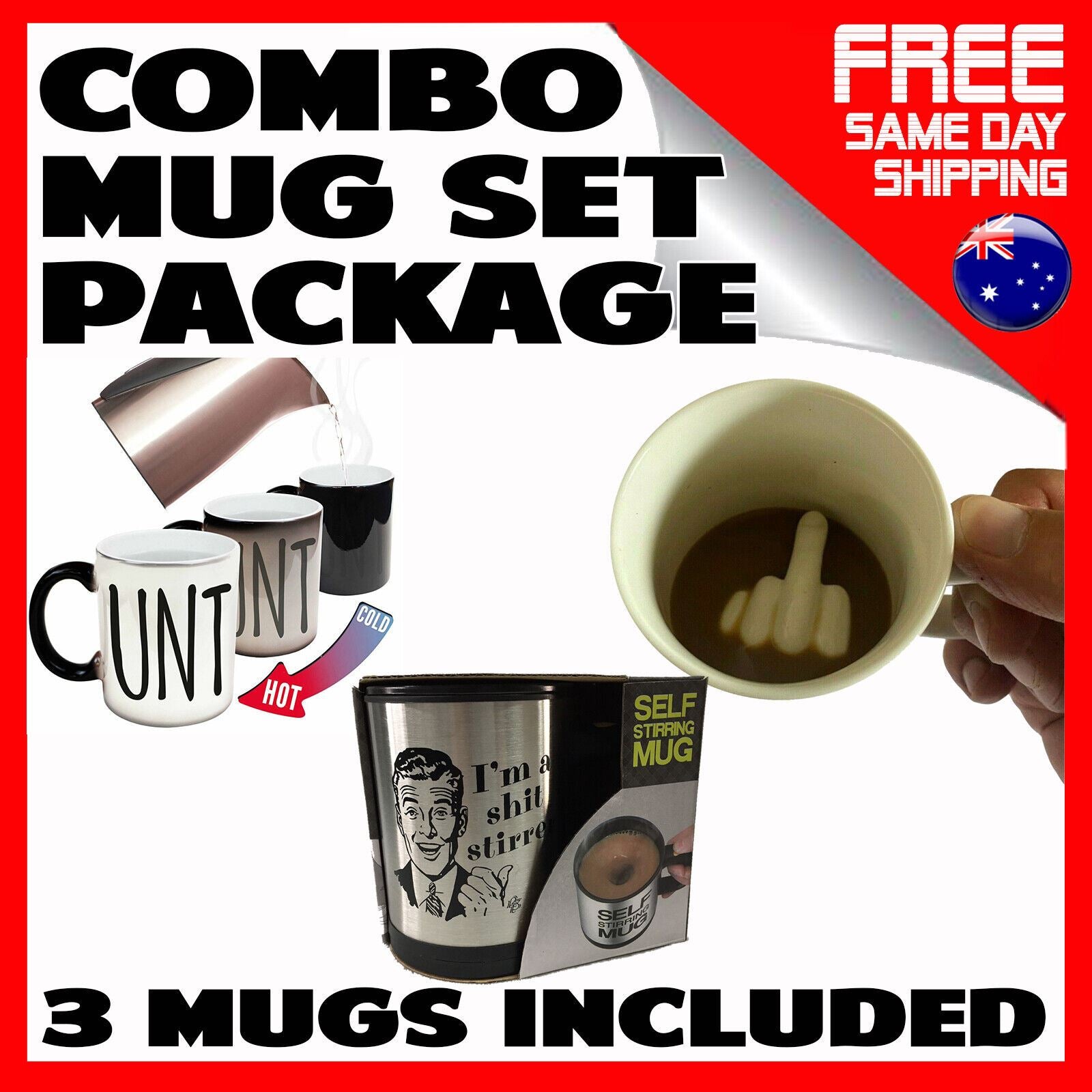 Christmas Mug Gift Bundle Set Funny Rude Novelty Gifts for him her 3 x Mugs Cup