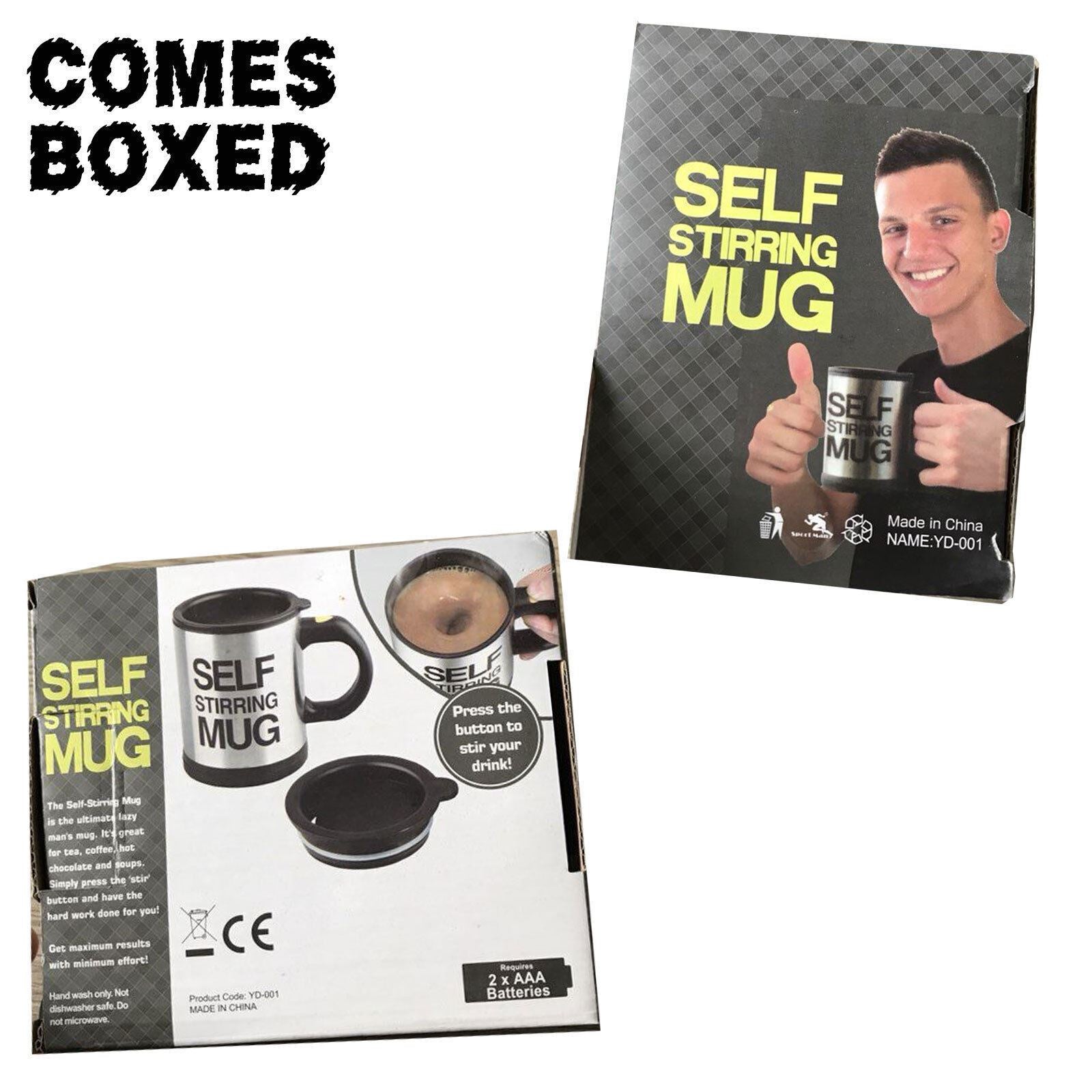 SELF-STIRRING TECH - Features a self-stirring technology that makes it different from any other self-stirring cup. A premium quality fluid motor works promptly upon the press of a button. EASY-TO-CLEAN - Our stainless coffee mug can be used as a normal cup for drinking if you do not need stirring function. It's also easy to wash, but do not use a dishwasher. NO SWEAT, NO HASSLE - Easy Operation While this mug looks great on any kitchen counter board or coffee table, its essence is to make work easier. More than the typical self-stirring coffee mug, this kitchen accessory works in an easy, convenient way. FOR BOTH COLD AND HOT DRINKS - Don't you hate it when you take a sip of your morning coffee and it's cold? Well with this self stirring mug you don't have to go through this unpleasant experience anymore. This self stirring cup is the best way to stir and take your coffee. But if your favorite beverage is chocolate, tea or cocoa, it works great too. Suited for just about any beverage! -------------------------------------------------------------------------------------------------------------------