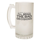 Alcohol Frosted Glass Beer Stein - You Bring Alcohol Bad Decisions - Funny Novelty Birthday
