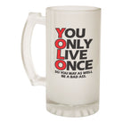 Alcohol Frosted Glass Beer Stein - You Only Live Once - Funny Novelty Birthday