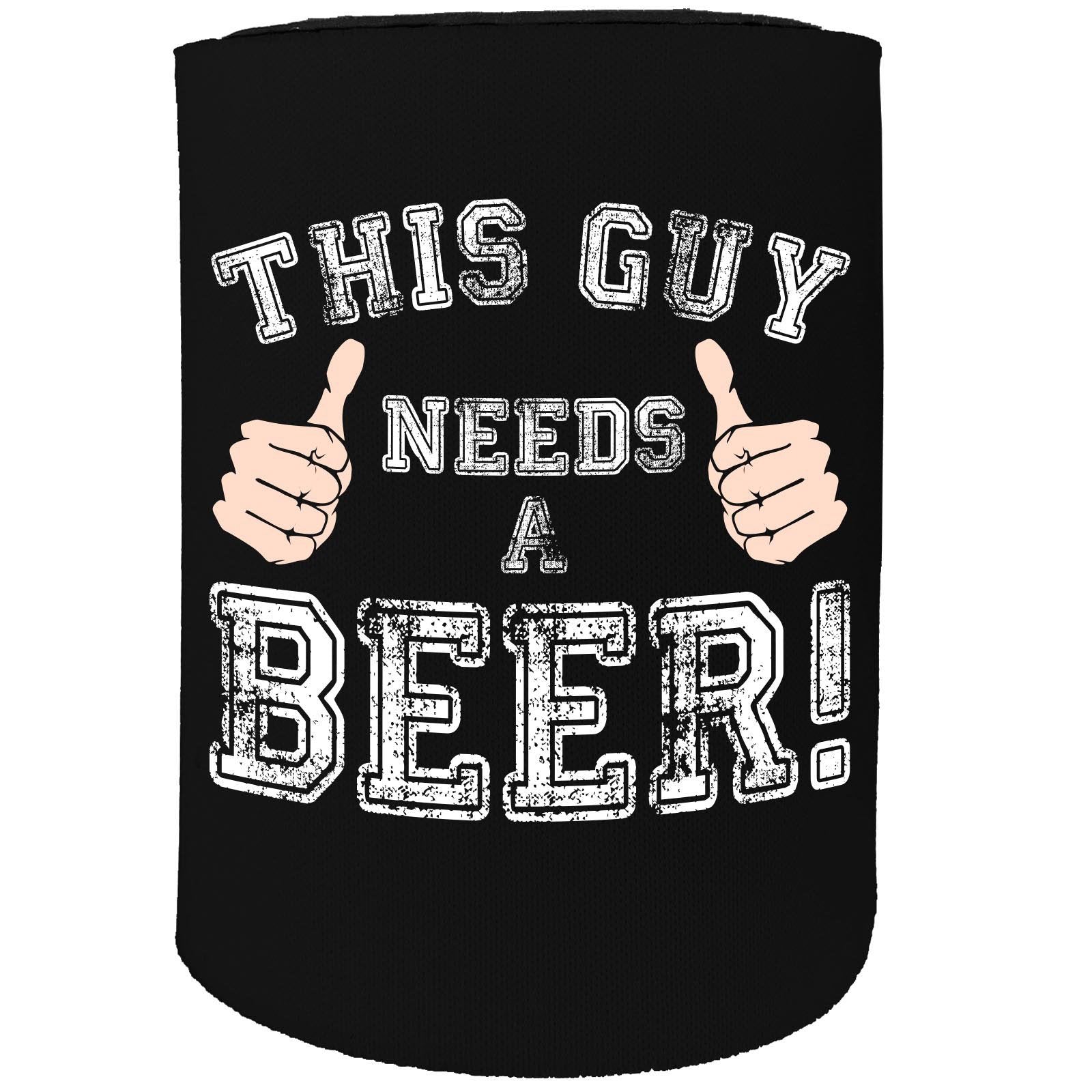 Alcohol Stubby Holder - This Guy Needs A Beer - Funny Novelty Birthday Gift Joke Beer Can Bottle