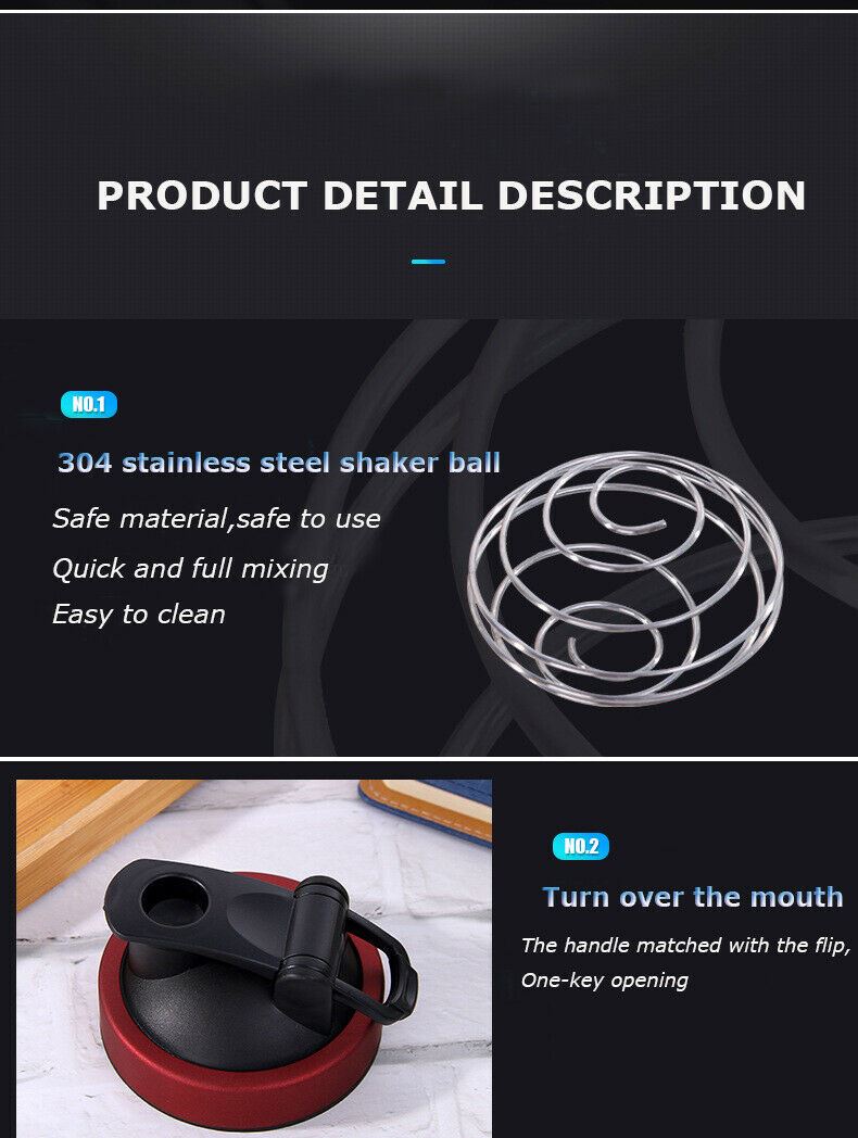 GYM Protein Shaker Bottle Stainless Steel Bodybuilding Water Drink Mixer 750ml