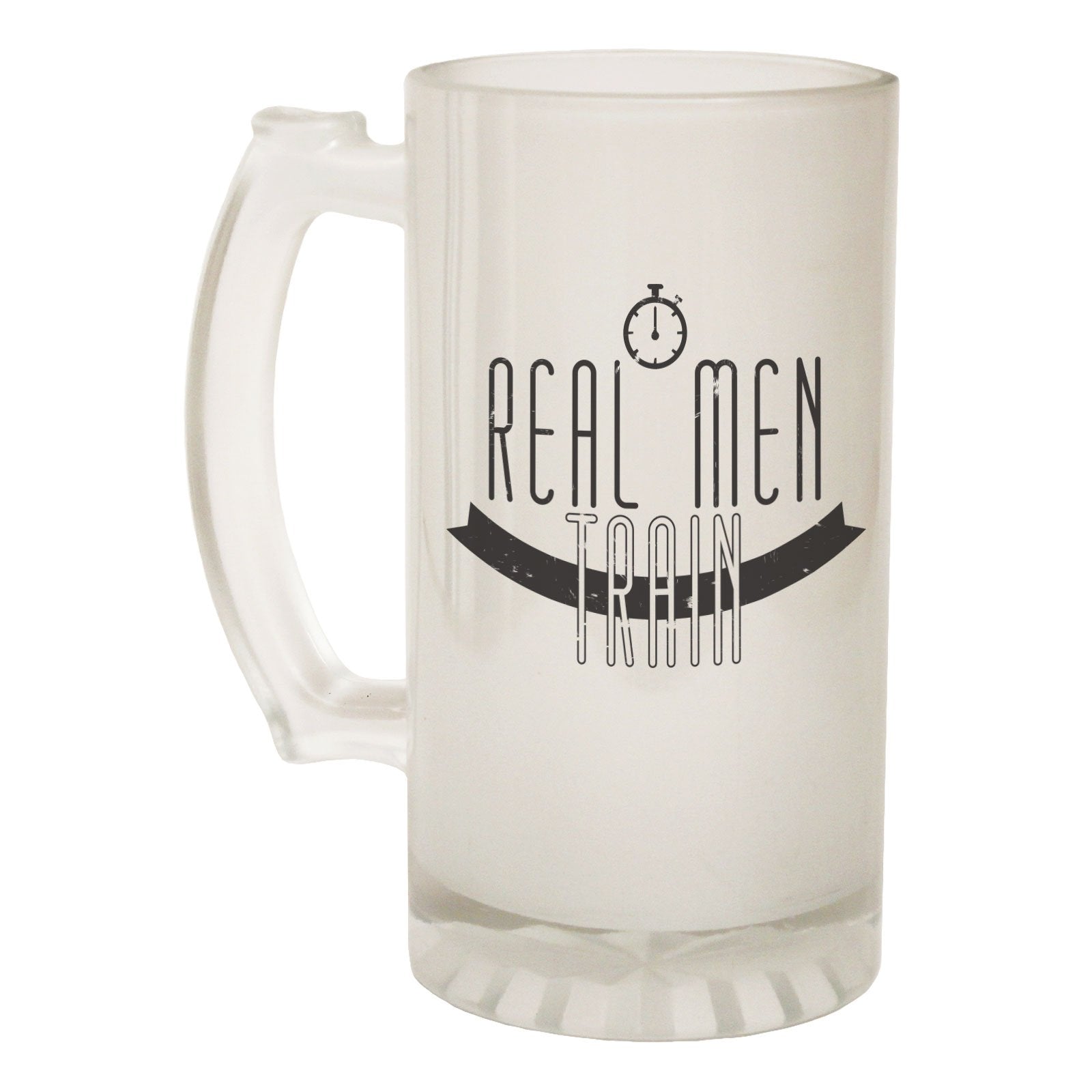 Alcohol Frosted Glass Beer Stein - Real Men Train Gym Weights - Funny Novelty Birthday