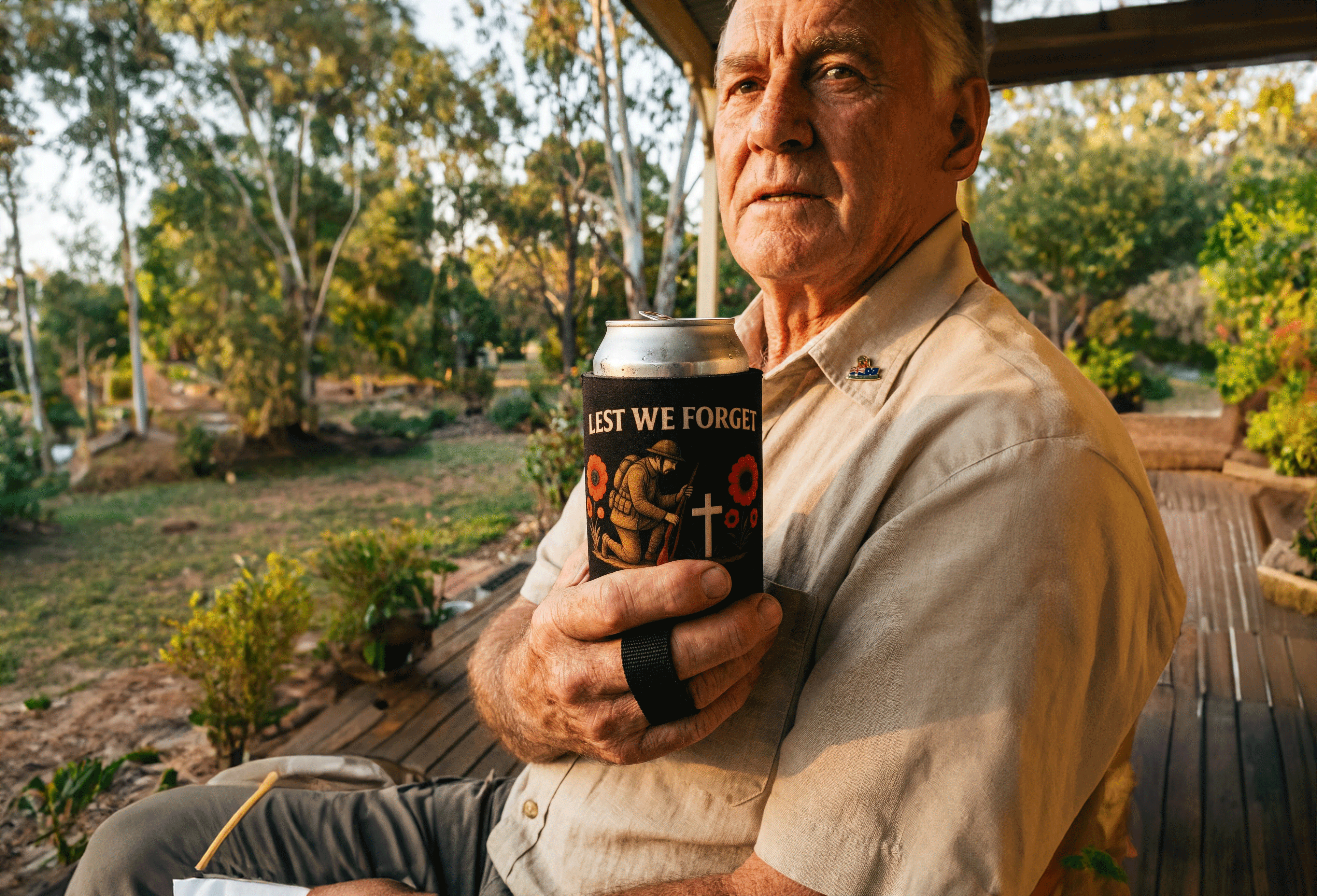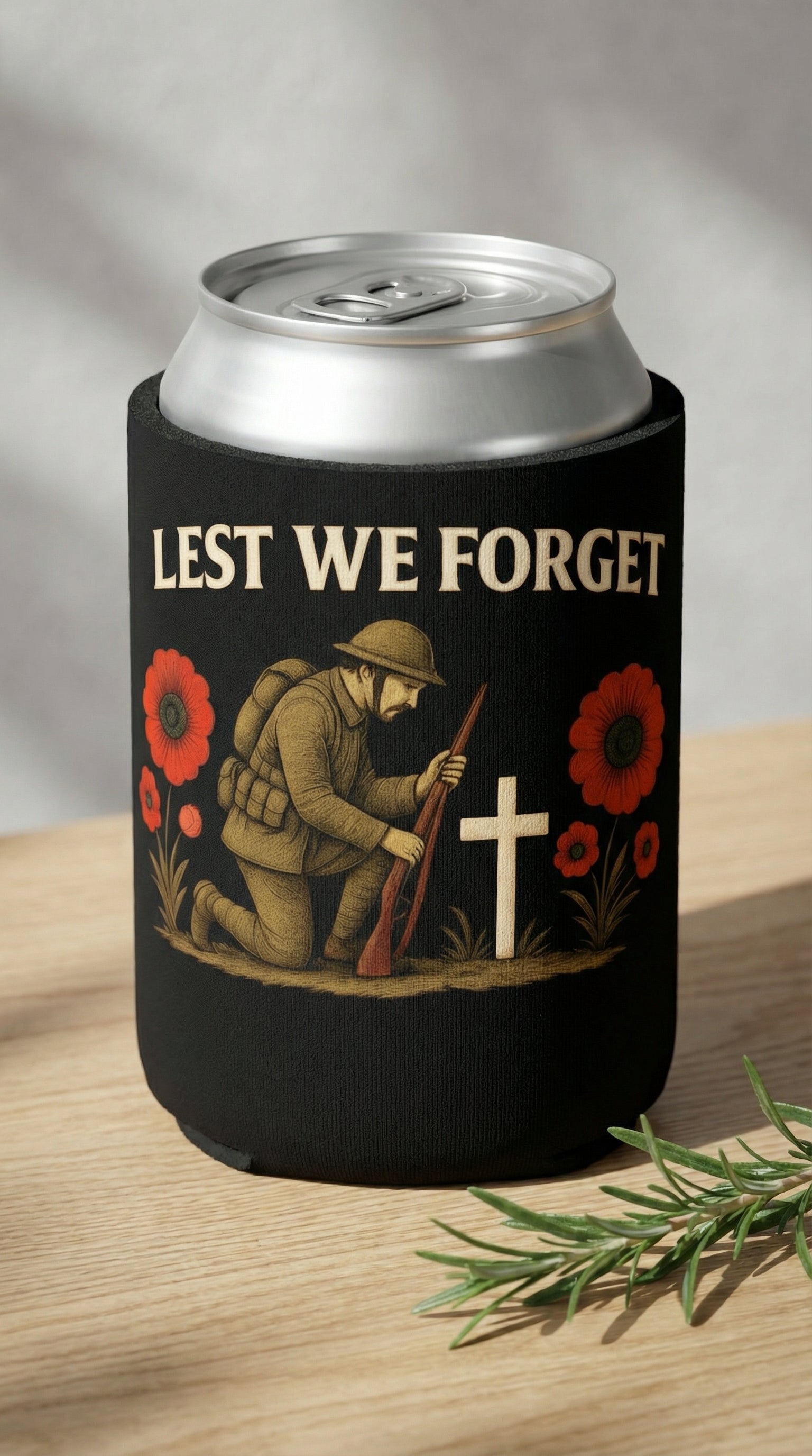 Lest We Forget Stubby Holder - Anzac Day honour War Soldiers Bottle Stubbie Gift