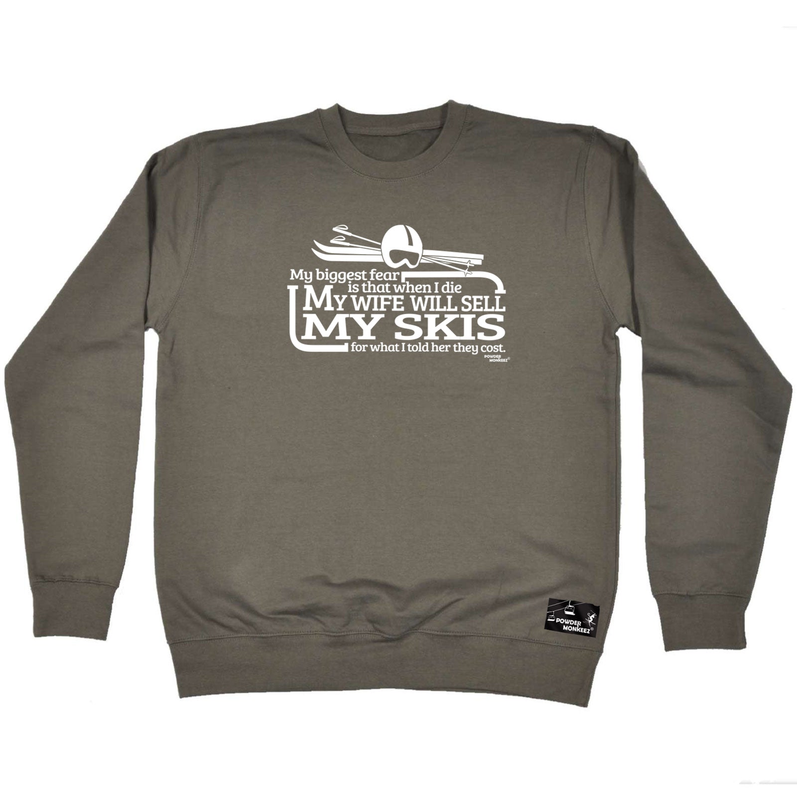 Powder Monkeez My Biggest Fear My Wife Sell Skis - Funny Novelty Sweatshirt