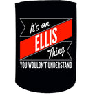 Alcohol Stubby Holder - Ellis Thing Surname Personalised - Funny Novelty Birthday Gift Joke Beer