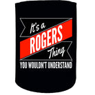 Alcohol Stubby Holder - Rogers Thing Surname Personalised - Funny Novelty Birthday Gift Joke Beer
