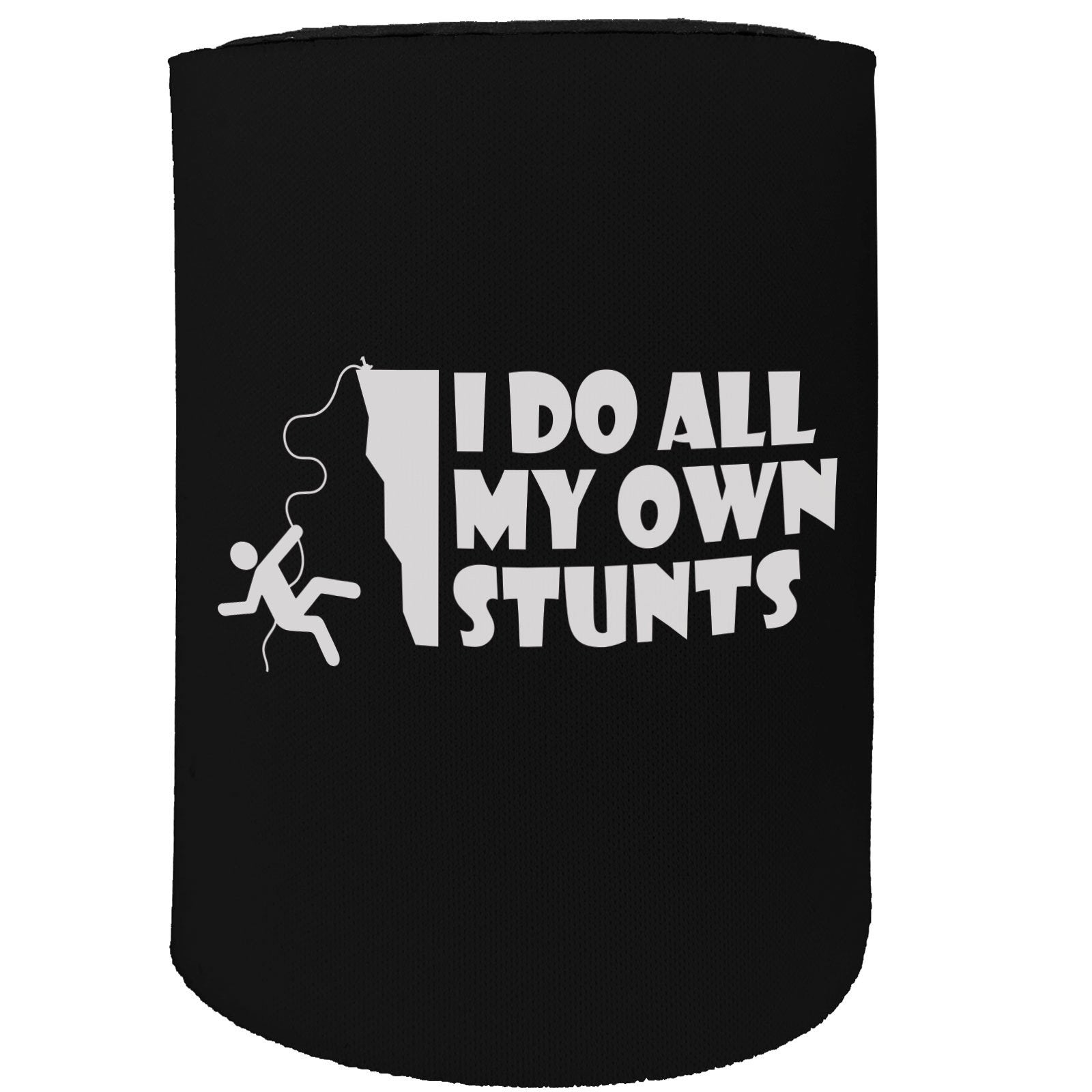 Alcohol Stubby Holder - I Do All My Stunts Rock Climbing Man - Funny Novelty Birthday Gift Joke Beer