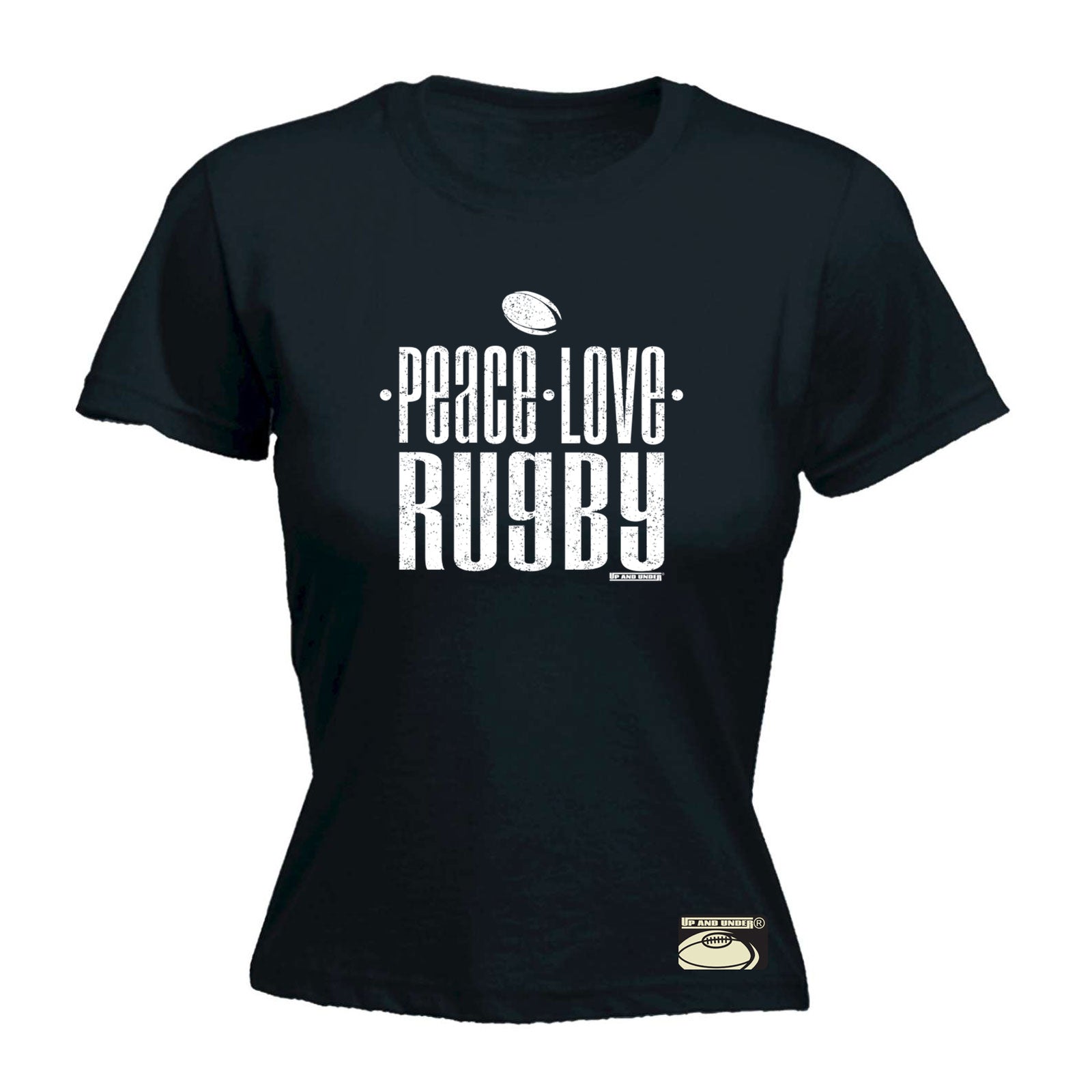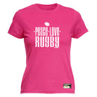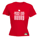 Uau Peace Love Rugby - Funny Novelty Womens T-Shirt T Shirt Tshirt