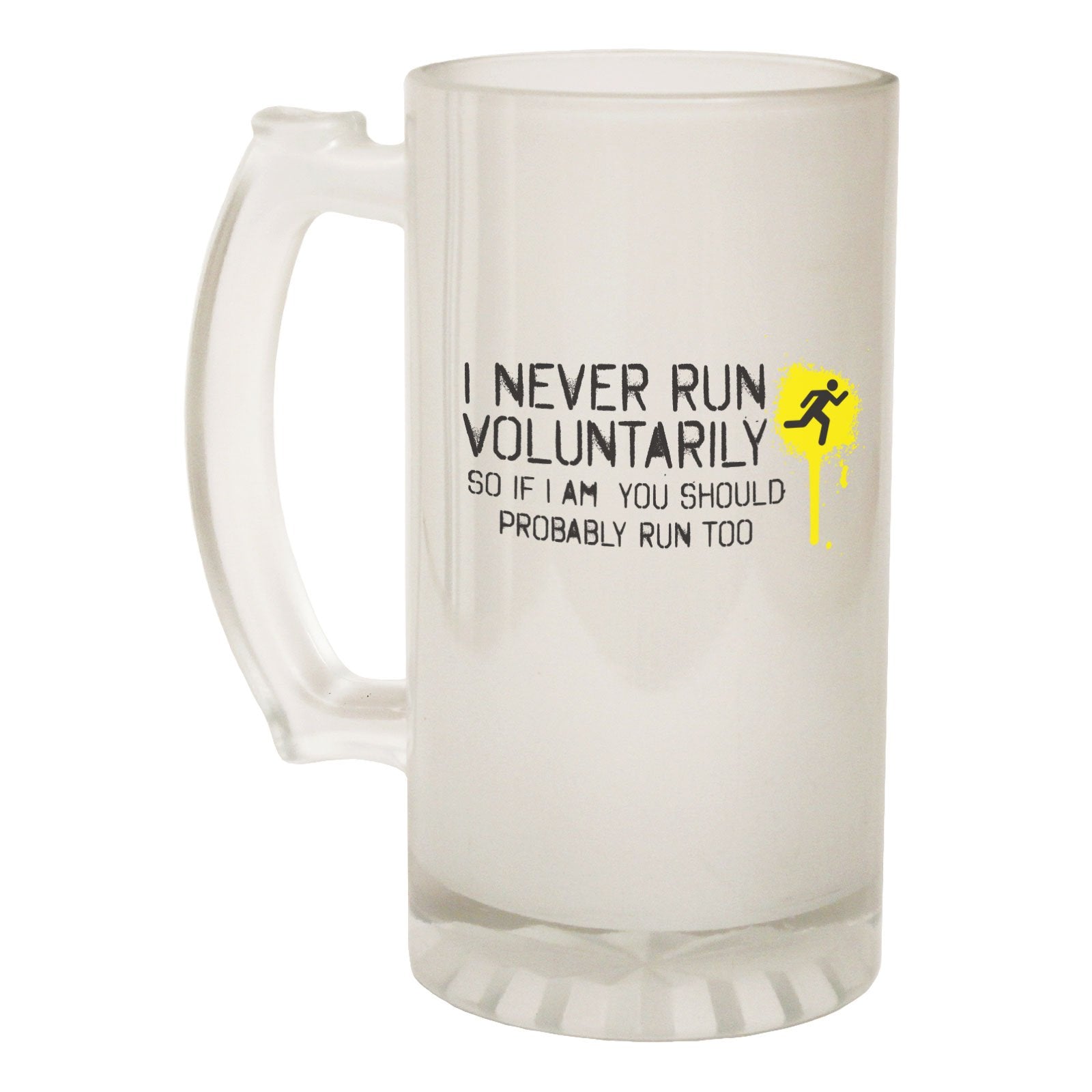 Alcohol Frosted Glass Beer Stein - Never Run Voluntarily Running - Funny Novelty Birthday