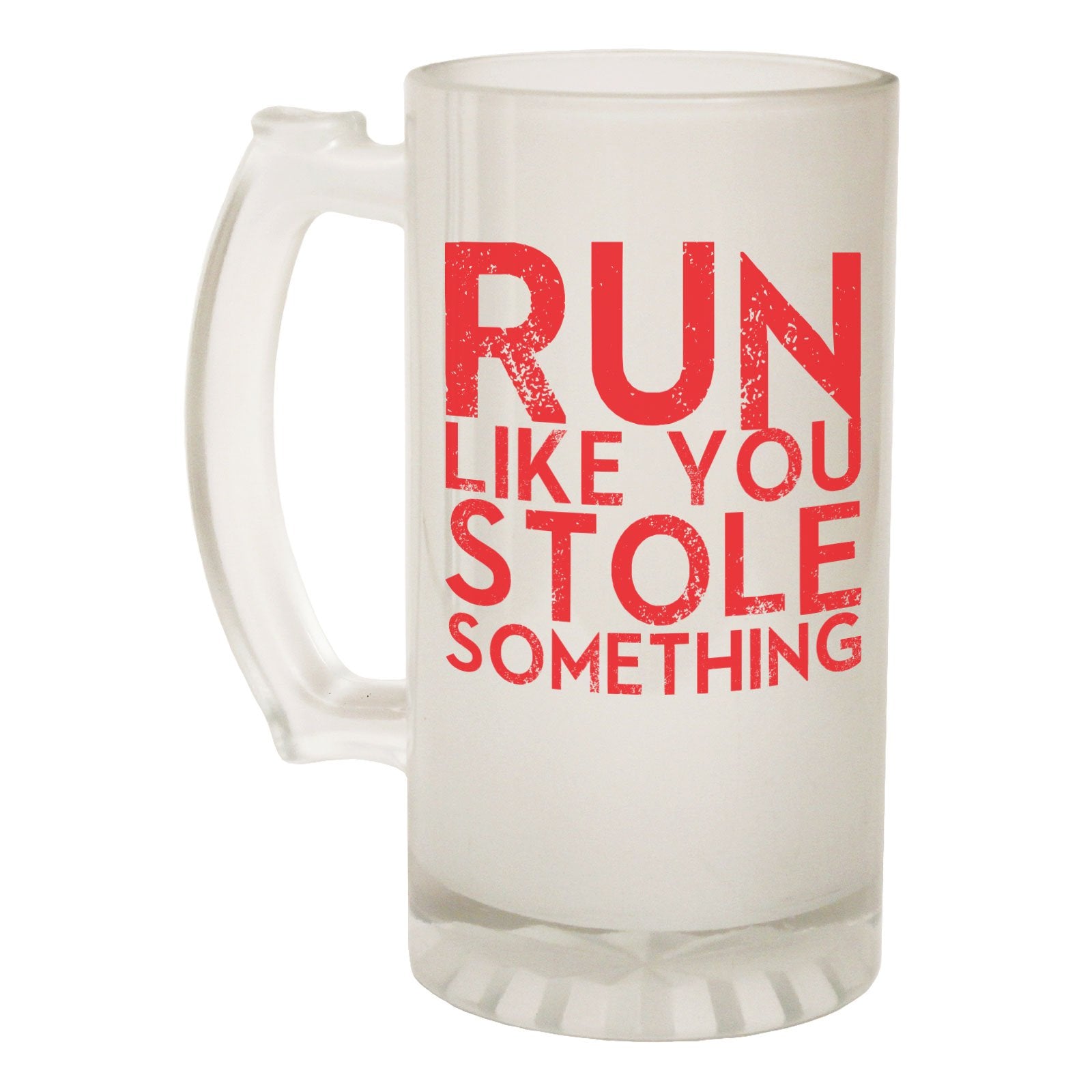 Alcohol Frosted Glass Beer Stein - Run Stole Something Running - Funny Novelty Birthday