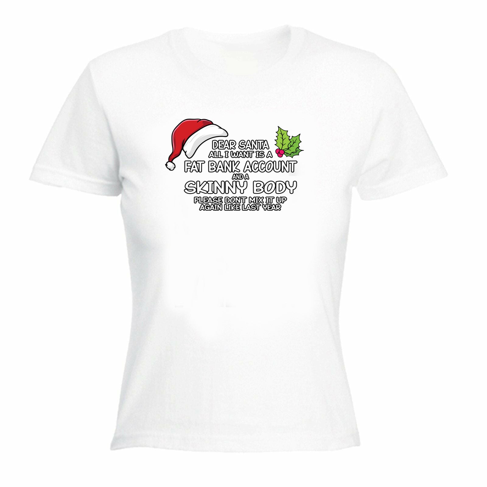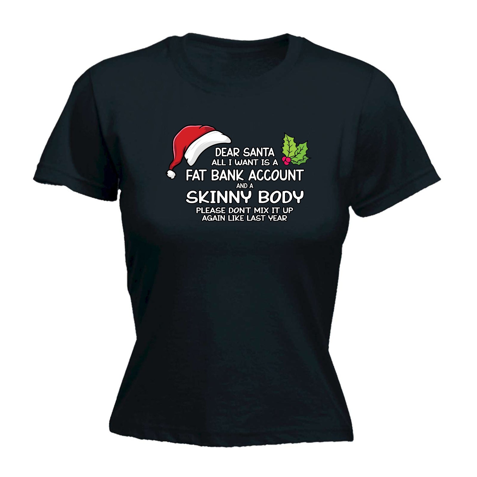 Christmas Dear Santa Fat Bank Skinny Body - Funny Womens T-Shirt Tshirt