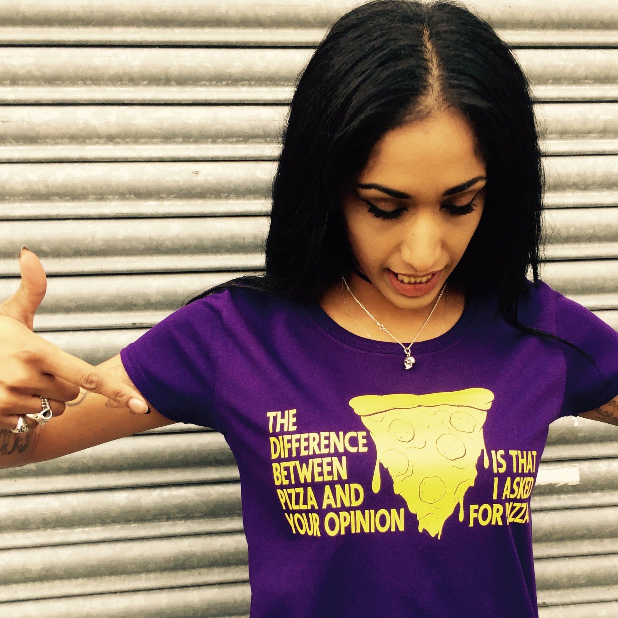 Food The Difference Between Pizza And Your Opinion - Funny Novelty Womens T-Shirt T Shirt Tshirt