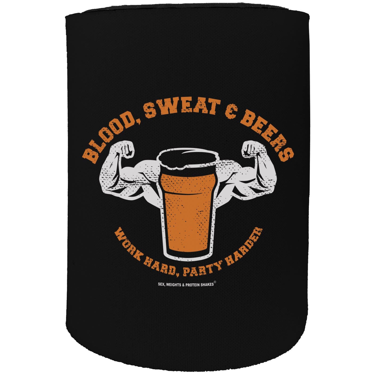 Alcohol Stubby Holder - Blood Sweat Beers Gym Workout - Funny Novelty Birthday Gift Joke Beer
